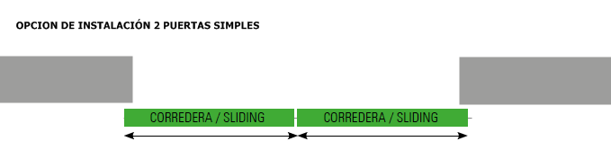 PUERTA CORREDERA 2 HOJAS, TODO CRISTAL,2 GUIAS A PARED DE 2 METROS.